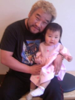 (Below: our friend Jaye-san, the gospel singer, hanging out with Olivia. She loves men!)