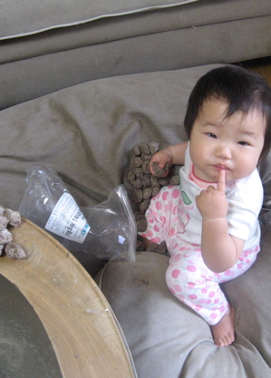 We found Olivia with these seasoned, sour, li hing mui dried plums piled in her lap, filling her cheeks, and falling out of her chubby fingers.