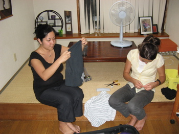 What on earth are our friends Laura and Megumi sewing in our living room?