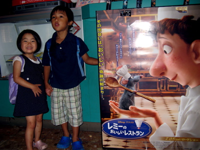 Yesterday was a fun (but expensive) first in the life of our family… we took Owen and Annie to see their first movie in a theatre. Both of them had really liked the previews for the Disney/Pixar movie called Ratatouille. The only problem was- the theatres nearby where it was showing had it dubbed in Japanese. So we found a theatre in Kobe (about 45 minutes away) that was showing it in English, and made an afternoon of it. Friends watched Olivia, so we drove to Kobe, had lunch, and watched the movie.