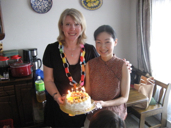 This morning our house church had a “surprise” birthday party for me (one day early). I sort of figured it out when it was our turn to host house church but they changed the venue without a reason. But it was still so touching as we walked in and one of the junior high girls put a homemade lei on me, and then one of the women pulled out a beautiful fruit birthday cake that she had made, and everyone joined in to sing Happy Birthday. I really felt loved.