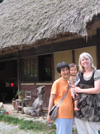 Yesterday, we took her to our favorite Japanese tea house, a 500-year old thatched-roof building with delicious green tea and specialty rice dessert, warabi-mochi. In the car coming home, she loved listening to Olivia sing out as only Olivia can do (see Tone-Deaf entry). Keiko took lots of pictures of Olivia’s smile, and spent time back at home with Annie, entertaining her with the Totoro characters (both of their favorites). Our three children loved having Aunt Keiko visit.