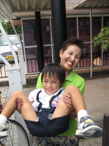 Today at Owen’s yochien it was grandparents day. They had a special saturday morning session in which only the students- and their grandparents- were invited. No parents allowed! We knew Owen would probably be fine without his grandparents flying in from Hawaii or New Jersey, but we thought it would be special to have our close neighbor friends, the Ishid*s, attend in their stead. We often comment on how they are very much like our children’s grandparents- they attend all of our family birthday gatherings, take Owen and Annie to the park, and really love on our children.