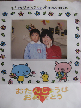 The day after Owen’s birthday, he came home with a special framed card, note and photo from his teacher, Hirose Sensei.