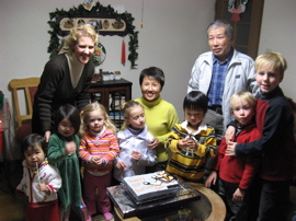 We had a really fun party on Saturday night. It is great to have the Ishidas, our neighbors who are our kids’ Japanese grandparents… and the Thomsons nearby to share in our family festivities…With these two fun families, who could help but laugh all night?