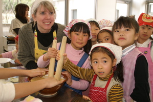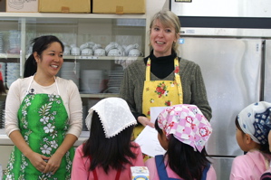 My friend Kazuyo had asked me months again to come, and as the details fleshed out I found out I would be teaching about 55 moms and their elementary-aged kids! I learned from a similar experience last year to pick simple recipes, as it can take 30 children a LONG time to take turns crunching up graham crackers..