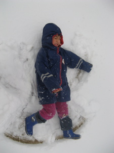 Annie also liked the idea of making an angel, so she went running into the open snow field and threw herself down, as well: