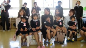 On Tuesday we had the special rite of passage, “nyuenshiki.” This is the opening ceremony of preschool/kindergarten, important enough to warrant businessman fathers with very few vacation days to take off work… the cause of many diets as moms try and fit into their best social suits. Hairdressers’ busiest days of the years are spring break as parents and children gear up for school opening ceremonies with the latest coiffure. (More about the dressing up at this previous post!)