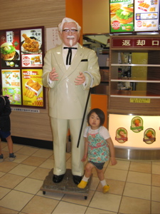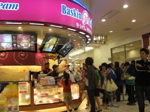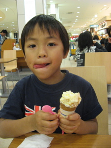 On Friday night we were shopping at the mall in Sanda and Eric noticed a huge line forming at our local…. Baskin Robbins! It’s called “31” here, in honor of its original flavors. And yes, free scoop day on May 9th is universal! We had to make a donation (of any size) to Unicef, and were given free scoops. The delight is clearly the same across the world, as you can see from our children’s smiles. Even the Colonel, watching across the way, seemed to have a twinkle in his eyes.