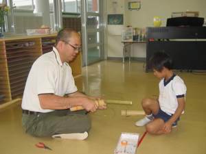 And here’s what Mom learned… to double-check the fliers that give the instructions for special days! Often I double-check with another mom to make sure I’ve got all the Japanese right, or to ask about some part that I didn’t understand. This time, I read it quickly and it made sense– Annie, first year, had to wear her normal school uniform; Owen, third year, had to wear his gym clothes (since they were making the stilts). Shortly after Owen’s class started, Eric motioned to me from across the sea of children and parents in the room… and it suddenly dawned on me that Owen was the only one of 30 students wearing his gym clothes. All the other kids were in their uniforms! When I came home and checked the instructions, I realized that it was the 2nd year students who were to wear gym clothes. Big oops. Thankfully, Owen is fairly self-confident and only one time made some comment. Another mom who I shared my horror with said, “Oh, I just thought his uniform must be dirty.” That was kind.