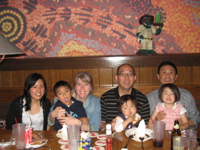 There is one goodbye that is particularly hard for us, because when we come back in 8 months, they will be gone, onto the next season of their lives in England. Bobby and Claire, our dear friends over the past 3 years, have been family to us in many ways. Last night we went to Outback Steakhouse for Eric’s birthday and to sort of say goodbye…