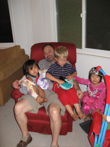 One of the highlights of our time in L.A. so far was a small gathering of friends as we celebrated Annie’s fourth birthday on July 4th. Our good friends Eric and Mary Bernard – and their 3 darling children- hosted the party, and it was wonderful to have friends who we’ve known through Asian Access in different ways join us. As you’ll see from the photos, this was Annie’s PRINCESS birthday. She has had the theme set for many many months – we could do nothing less than accomodate. She was in her glory, and quite convinced that the Redondo Beach fireworks that ended our special evening were all for her.