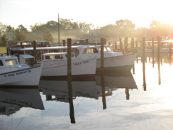 The area was beautiful.  We saw amazing sunsets over the Chesapeake each night, and enjoyed beach-combing on deserted beaches as well as walking in the morning around the boats as the sun poked through.  St. Michaels is well known for its antique shops, quaint buildings, and fine dining, and we enjoyed exploring it leisurely.  And we had great crab, oysters, and simple dining on the edge of a pier.