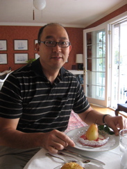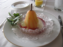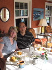We stayed at a B & B on Tilghman Island, Maryland, which is right on the Chesapeake.  We wanted to go to the St. Michaels area, and were not disappointed!  Tilghman Island is about ten miles south of St. Michaels and we loved being somewhat removed from the bustle of a busy town but close enough to enjoy it. We loved, loved the Lazyjack Bed and Breakfast… we had a wonderful suite (fireplace and double jacuzzi!), and were served beautiful, delicious gourmet breakfasts.  Our favorite was this morning:  poached pears in a berry sauce, and then baked french toast stuffed with blue cheese.  Absoutely amazing.