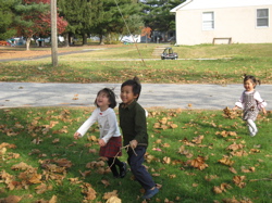 Yet I loved watching our children today after church as they celebrated autumn in their own way. The huge sycamore tree in our front yard has been shedding its expansive leaves over the recent weeks. Each gust of wind brings a few more tumbling down… the perfect objects to be chased and caught by six eager hands. The pictures speak for themselves as our kids lived in the joy of the moment, with no concern about what comes next, and entertained all of us immensely.