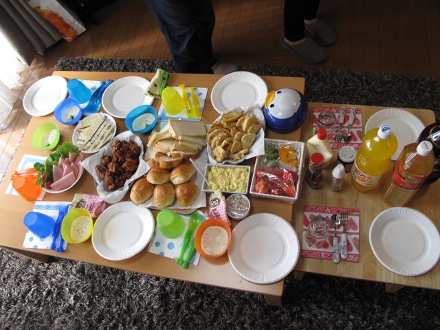 1) they have a small apartment; 2) they’ve never had another family over to their home; (most Japanese typically do not entertain in their homes) 3) Mr. K. works crazy hours, 6 days a week as the owner/chef of a small restaurant in town as has little family time; 4) we have four children! No one has families over for dinner with four children! (Okay- so that’s my fear. I’m getting over it).