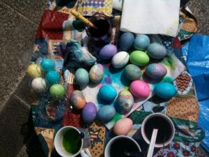 Today we had beautiful weather and a special Easter outreach in the park. It was a fun mix of old and young, with about twenty kids, complete with Easter egg hunting and dyeing, picnic, and lots of play and conversation.