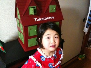 One of the traditions we have started at Christmas is an Advent house…. adapted from an idea from our friend Kristin. Each night we put a personalized Bible verse for each child in the door, and then hide three different treats in one of the other doors in preparation for the next morning. They are excited each morning to read their verse and find their treat.