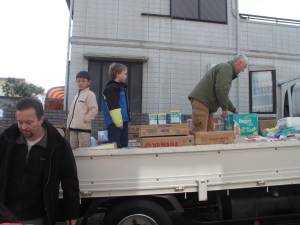 One of our long-term prayers in serving in Japan is to help those we work with see the joy that comes from helping others outside one’s group.  These past two days brought great joy to our hearts as over twenty-five friends from our community came by our home to bring their contributions and help out.  Our former language teacher came and brought a monetary gift, as did several others.  God – its a small thing, but let this be one of the ways that you draw people closer to your heart.  We pray, too, that God will direct these goods to people who direly need them at just the right time.  Place our men just where you can use them the most to be your hands and feet; to bring physical and spiritual comfort to those in such great need.