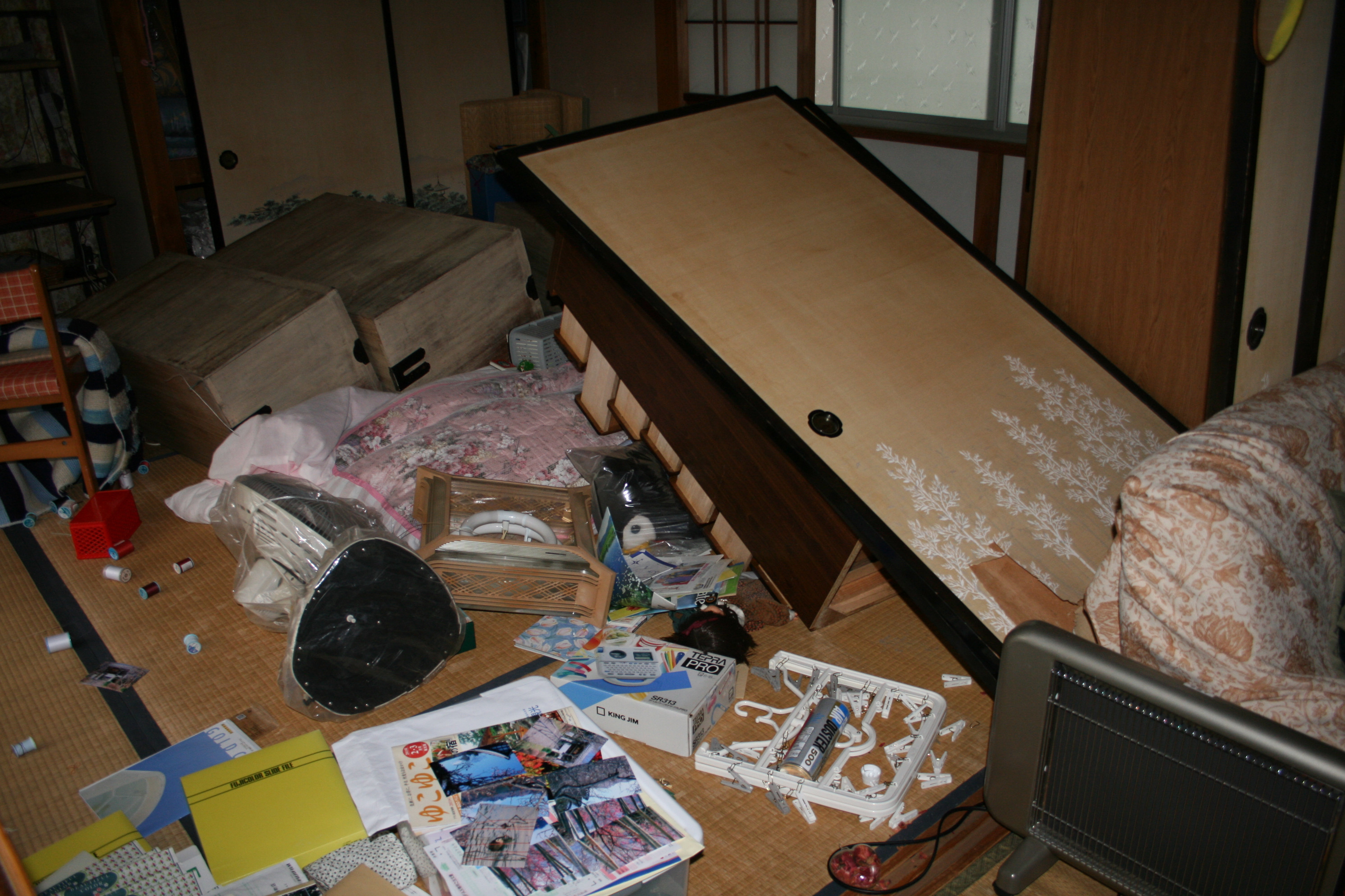 Last night when Kent and Eric came home, they said that most of the damage that they saw was from the tsunami much more than from the 9.0 earthquake. But when I saw these pictures of Reiko’s parents home – a few hundred kilometers away from the epicenter – I was shocked. She wrote that it took them over a week to clean up the inside.