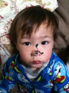 We made some modified s’mores (they weren’t very good), did a flashlight search game for glow-in-the dark (in theory) bugs and stones, and read some other camping stories. I’m tired, but it’s been a good day… I so love the family that God has given me. Even when one of them gets into my mascara while I run to the restroom, and the other three sitting next to him somehow don’t notice at all.