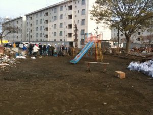 Stories have been shared from the week up there when Eric was not there. The teams continue to spread out into the community and find people who need their assistance. They have shared updates of specific families they have touched in various neighborhoods. Because of the extent of the tsunami damage, the government is unable to help people clean up their homes from tsunami damage. Many staying in evacuation centers are spending their days trying to work on their own homes, but there are many who are physically unable to do what needs to be done. There are often huge challenges; one of the volunteers two days agree got sick twice just from the terrible smells in one home. The day that Eric was driving back last week, a few went to help in a home and discovered a bunch of dead squid under the floor boards – they were brought in with the tsunami and got stuck. Ugh. But these are the kinds of things that the teams are able to help do…