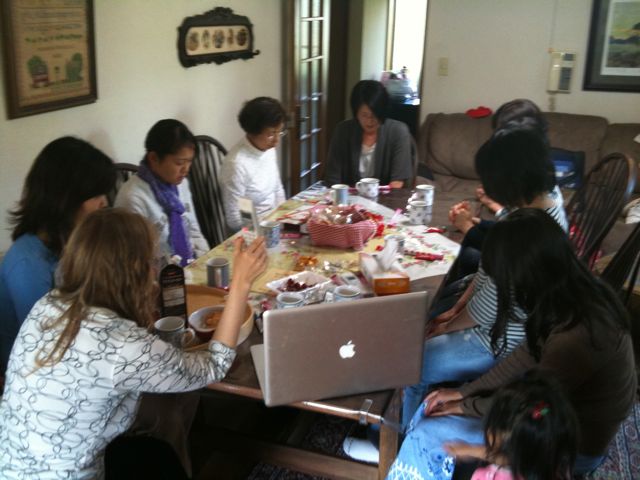 When she said “Amen” there were four or five around the table with moist eyes. Kazue said she wished she could see everyone’s faces; we encouraged her to come and visit. (I really want to make this happen!) After we said goodbye and hung up, Naoko said, “It’s amazing that she lost almost everything but still trusts in God and knows what is important in life.” I love it that the ladies in our community had a chance to hear the realities of walking with God from someone who has just had their world washed away – and found that it’s still worth trusting Him.