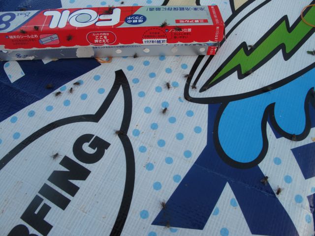 Two of the unfortunate results of this amount of piled garbage and the summer heat are the smell, and the flies. Already Ishinomaki has quite a reputation in this area. Because of the large fish markets and factories by the coast that got wiped out by the tsunami, there are still rotting fish buried across the city…. We had to work hard to keep the flies off of the food we were barbequing. Eric last time took up about 120 cans of insect spray and they were gone quickly. It threatens to be a growing problem…