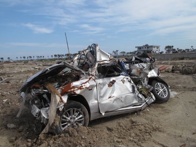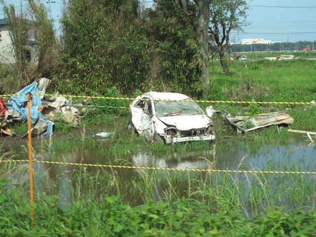 The day after we returned to Sanda, I saw a car parked in a field and I thought, “Oh, they haven’t towed that yet.” I was so used to seeing smashed cars, trucks, and vans everywhere up in Tohoku.