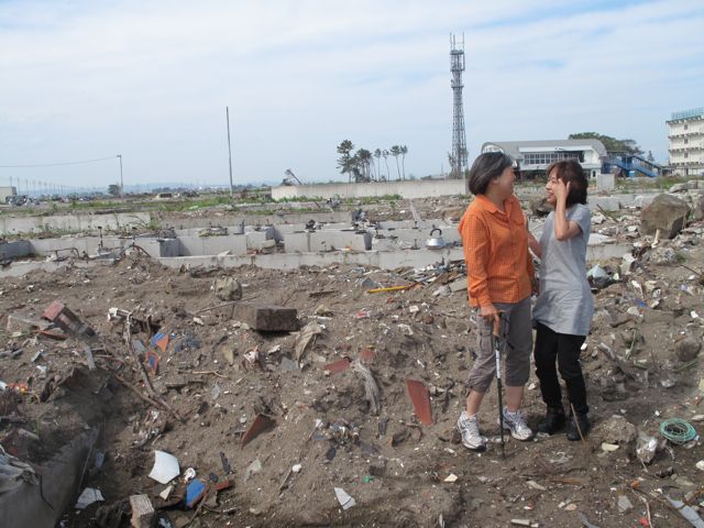 As we laughed through our tears, she told me that for several days after the tsunami she thought Kazue was dead. Most could not get cell reception (nor recharge their cell phones if they could); she knew that Kazue’s area of Arahama was washed away. Two days later, she heard a knock on her door – it was Kazue. She said she nearly fainted. Kazue then interrupted and said, “I had to come over! I had no clean underwear and you were the only one I could ask to borrow some of your used ones!” Cheers to good friends.