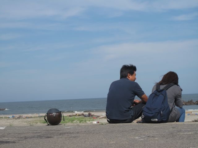 Kazue drove us down along the coast, and we followed the devastation of the tsunami. We drove over a railroad crossing in which the heavy ties of the railway were completely washed away…
