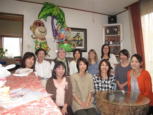 From last Thursday afternoon through Monday, Asian Access had a training retreat for most of our staff in the Kobe area – just about fifteen minutes away from our home. The day it started, we went ahead and scheduled our ladies’ English class that day to be a potluck lunch and surprise shower for our co-worker Rhonda, expecting a baby boy anytime. She has been teaching the advanced english class while I have been teaching the beginning class in our home.