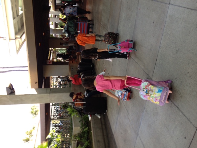 What was great about these coupons wasn’t the coupons themselves but the idea of them… whenever one of us would get a little edgy, someone was sure to quickly say, “Hey Mommy, are you going to use your grumpy coupon now?” Check. Oops. “Owen – I guess you need to use your coupon!” Ooh – pull it together so you don’t need to use it! Overall, the kids did great in transit – even Ian, who loved pulling his own suitcase.