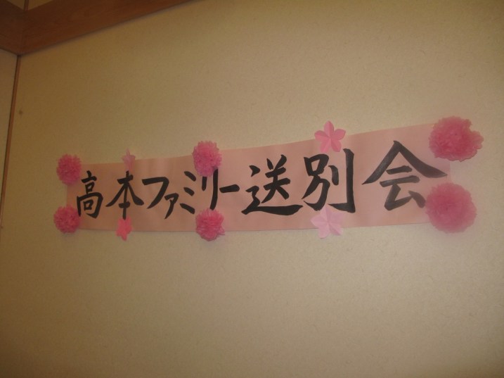 Eric and I were each asked to share some words before everything ended.  I made it through, not without my voice breaking and being handed the tissue box.  But I shared about a book I had read in college that had one line that I always remembered… that adding a real friendship to our lives is like adding a room to our home.  Each room is special and unique, and reflects the character of those two people.  Each room is irreplaceable.  Our friends in the room all knew that we have been looking for a larger rental home the past four years, but haven’t found one.  And I shared that we are glad we didn’t – it would have made this move to Ishinomaki harder.  But I also said that we didn’t need a larger home, because instead — God has given us a mansion (yashiki in Japanese). With each special friendship in the room, God has given our family the most amazing home in Sanda.  And even though we are are twelve hours away, we still have our Sanda home, because those friendships will remain…