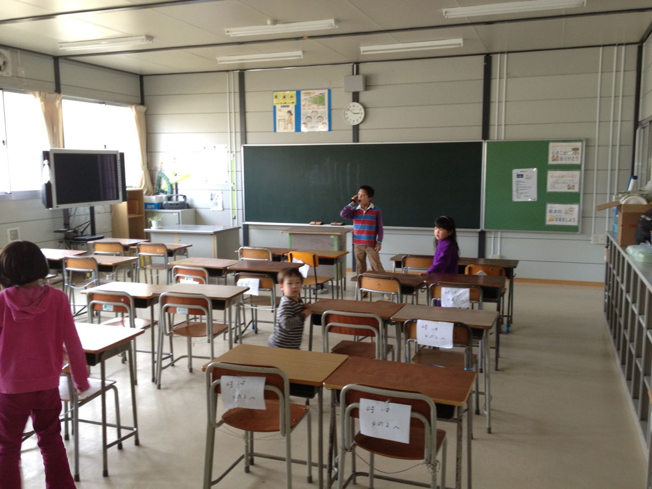 We went on Monday to sign up Owen and Annie for their elementary school – it starts this coming Monday.  The elementary school that is nearest to the land that we hope to buy was hit hard by the tsunami, and also became the evacuation place/ home to over 700 people for many months after.  It was the site of different BBQs that we have written about previously.  It looks in sad disrepair now, but the plan is for them to fix it up over the next two years.