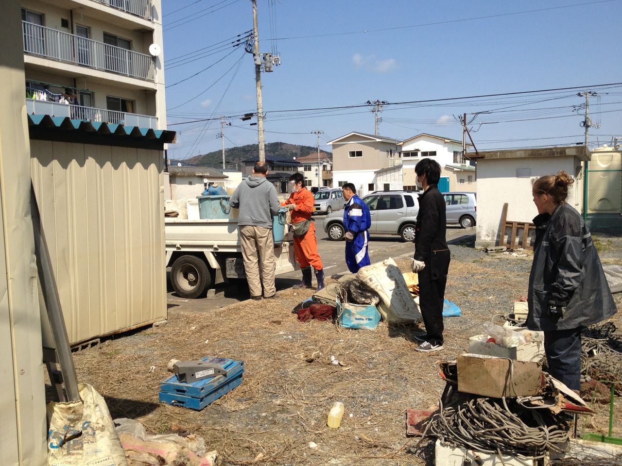 I think that we had sixty or seventy people crammed into the Be One house tonight. It was insane, and lots of fun. A team of nine from Osaka drove through the night last night (and they are leaving tomorrow morning) to work up here for the weekend. They spent the day cleaning out a tsunami-hit apartment, and cleaning out a shed that had been filled with tsunami water but wasn’t opened for a year, until today. Oh, the smells