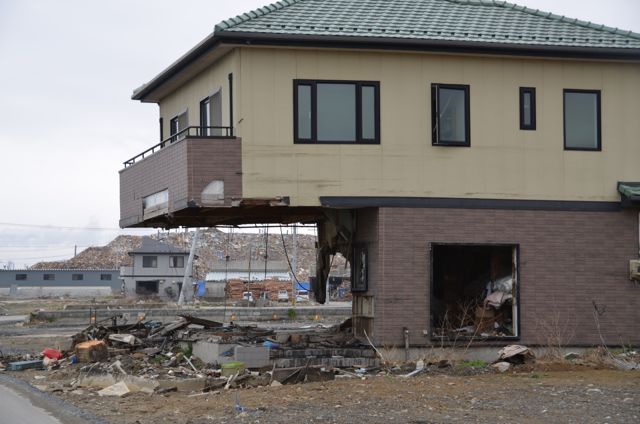 What struck me with this apartment building – it was at least two kilometers inland – but even the second floor was destroyed by the waves.