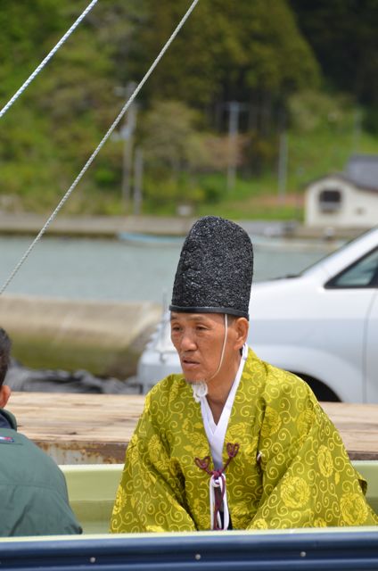A Shinto priest was brought in to formalize the event. ( I found out that women are not allowed on the boat during this ceremony! I told our friend Beth that I would give her fifty dollars if she jumped on the boat with all of them. She didn’t go for it.) It was quite windy- apparently the priest’s hat was prepared for the wind, for it stayed snugly in place.