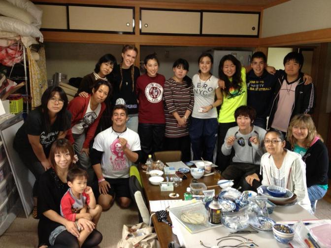 **The last two days we have had a team from Christian Academy Japan, an international school in Tokyo, working with Be One.  Yesterday morning we went to the valley of death/life below our home and gathered up broken pottery for an hour or so.  Twenty five kids spread out can do a  lot of gathering! That was a great blessing, and it also gives the volunteers a real sense of the destruction that happened here a year and a half ago.  One of the girls, Heidi, picked up her first piece of pottery and discovered that it was a broken plate with writing:  her name!  It was crazy.  When we returned to the Nozomi workshop, one of the women made it into a necklace for Heidi.  She has the first personalized Nozomi piece!