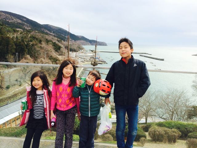 What we thought about later was how it perhaps wasn’t a wise decision to take our family biking along the shoreline of Ishinomaki… since we had been under a tsunami advisory all day. Because of the major earthquake in Chile yesterday, this morning at 3 am there were the unmissable sirens and loud announcements over the area loudspeakers, telling those along the shoreline to evacuate and all others to be on the alert. As a result of the this alert all day, a number of our Nozomi staff could not come in… one husband was not allowed to go home to his family while the advisory was in effect. (The advisory was lifted around 5 pm; only small waves came in to northern Japan as a result of yesterday’s earthquake).