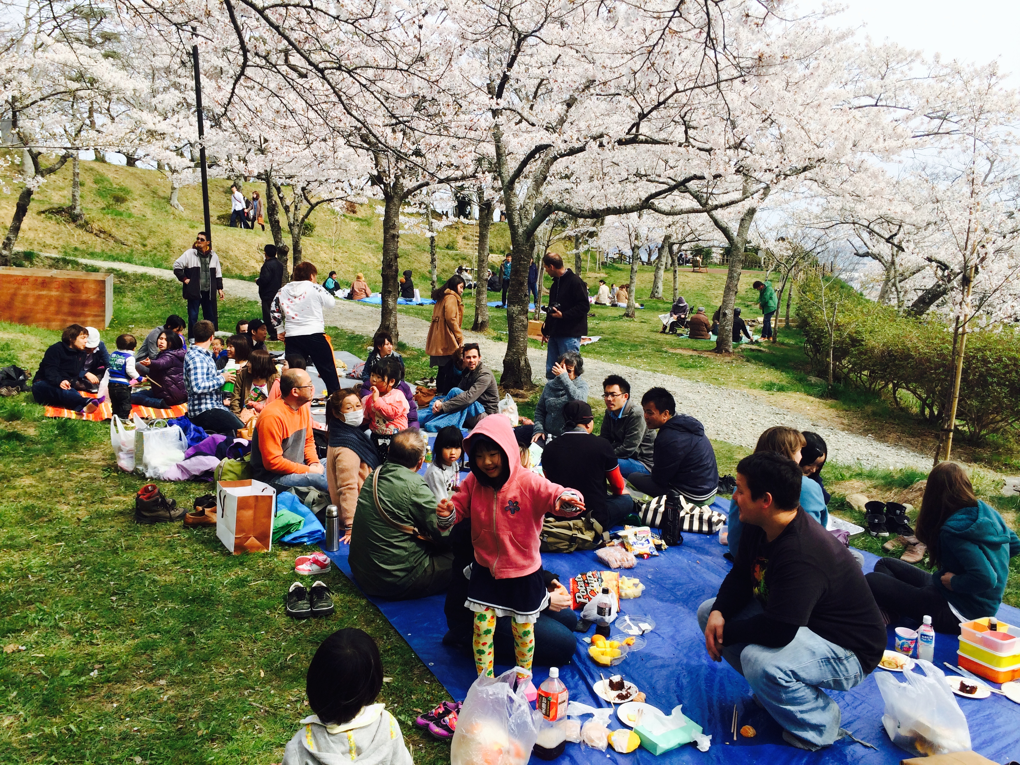This weekend was peak viewing day for the cherry blossoms in Ishinomaki… so despite the chilly weather we had a picnic after worship under the cherry blossoms! It is still a somewhat bittersweet location, as the whole area below this hillside was washed away by the tsunami. Today it was nice to be with our community in the midst of beauty in Ishinomaki.