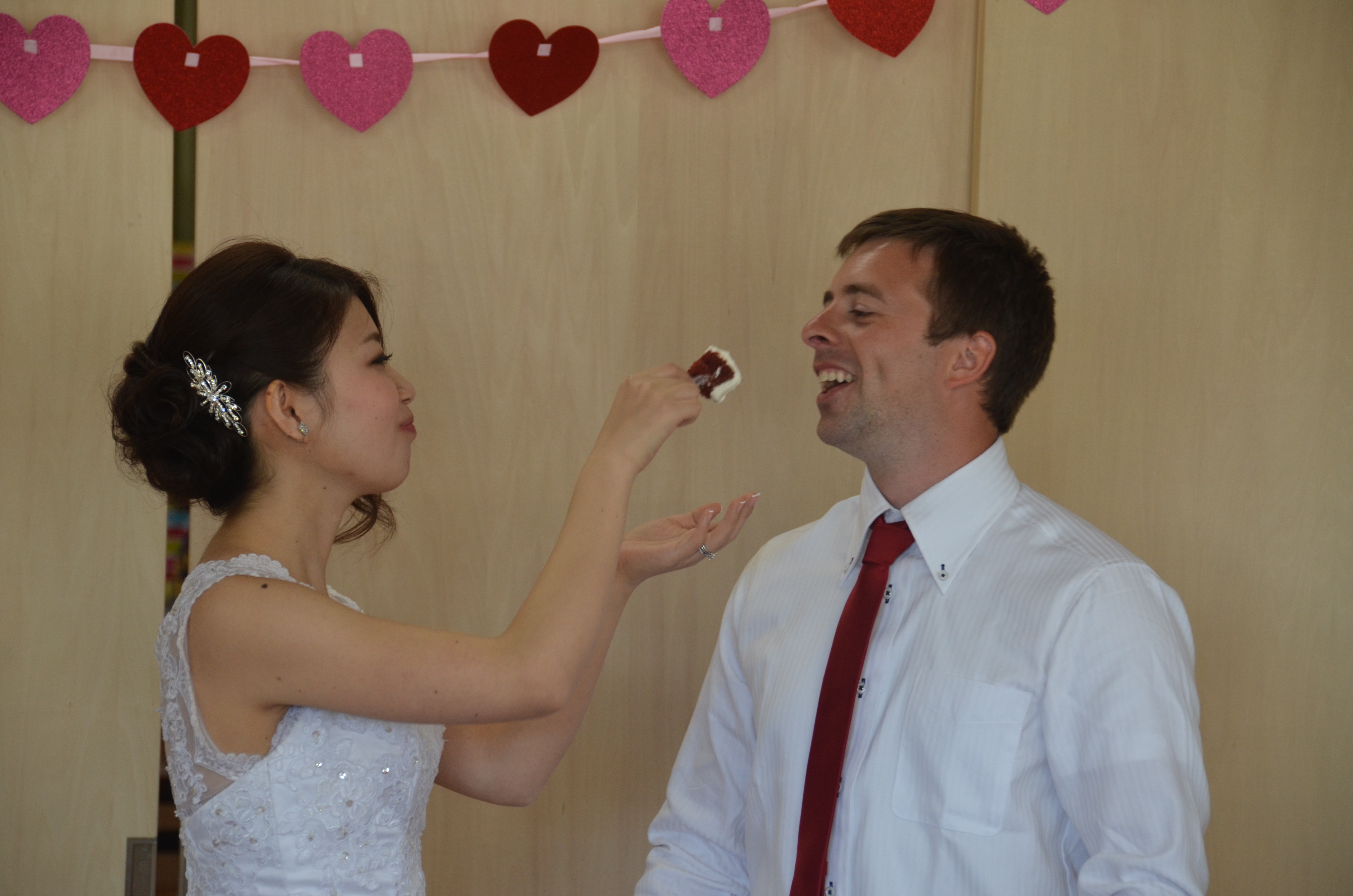 Here are some photos of the finished product and the lovely couple. It was a lot of fun to think through and I was so happy for the encouragement of my husband -as always – and the help of a friend. Congratulations, Cam and Ayami.