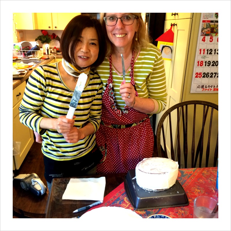 I loved having my Nozomi friend Mika come and help me both Saturday and Sunday – she has done desserts on the side and was a huge help. I really really don’t like the pressure of making a cake for a large group of people – her confidence was a huge encouragement. We have both decided that after our 3 months in the US we are going to watch YouTube and continue self-teaching and practicing different techniques!