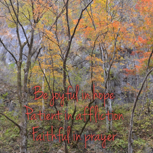 It has been a challenging week, with some very real ministry and personal challenges and disappointments. Some weeks are like this, aren’t they? We found out some really hard news about a dear friend; faced some personnel challenges at Nozomi Project (this is not new, of course!); received some criticism about our team; felt disappointed by a friend… It all added up and I just couldn’t hold it together. Last night while cooking dinner I had to cry for a bit. Olivia was nearby and asked what I needed. A hug! Later that night I was reminded of a favorite verse from Romans 12:12. Three key things that can guide us through tough weeks.