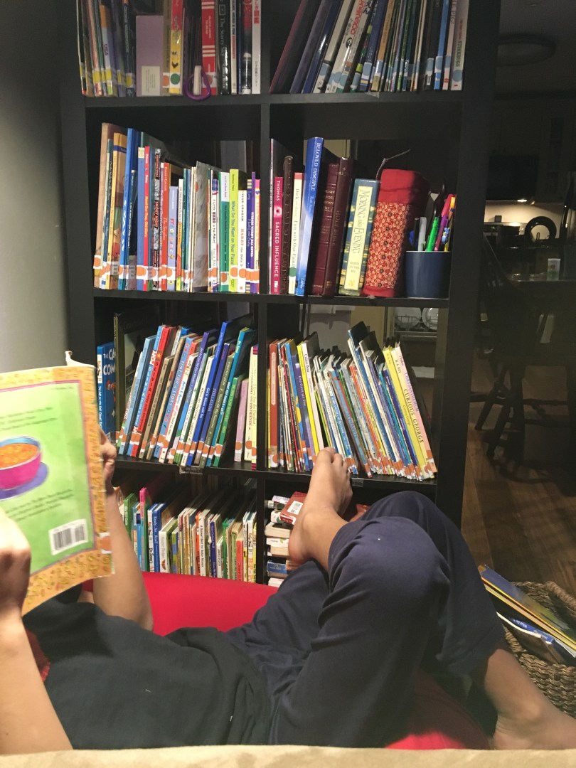 It’s been great to see the kids at various times of each day just “hanging out” with the books.  Even our oldest has had fun revisiting some of the books that had been read to him when he was younger. Books are just so awesome!