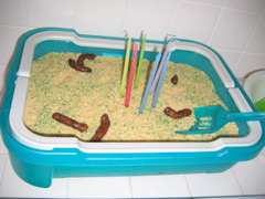 Eric’s most creative birthday cake — a cat litter cake — and the one that caused the biggest “stink” among guests: (it’s not really cat poo-poo, I promise!)
