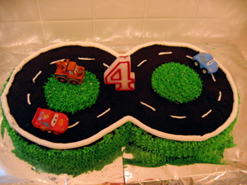 I was looking for a racing car track cake and found yours to be most practical. Thanks a million.