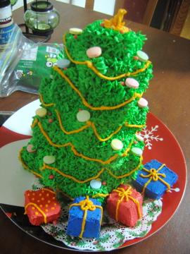 a Christmas tree cake (you can make these into individual cupcakes). See blog entry for details on making these)