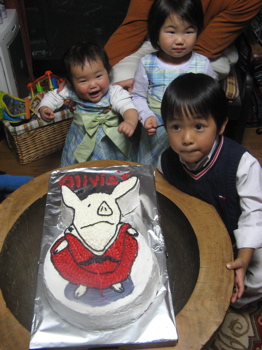 Olivia’s first birthday with an “Olivia the piglet” cake (we figured we can’t do a pig when she gets a little older so we better do it now when she doesn’t know better~)