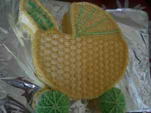 I self-taught myself on YouTube how to do basket-weaving one night last September in order to make a stroller cake for our little friend Joshua’s baby shower: